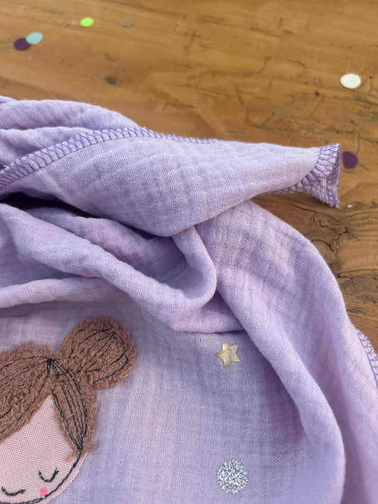 Kinder Halstuch Musselin, Musselintuch, Musselinschal,Tuch Einhorn, Geschenk, Konfetti, Glitzer, Musselin flieder, Tuch Frühling, Sommer,
