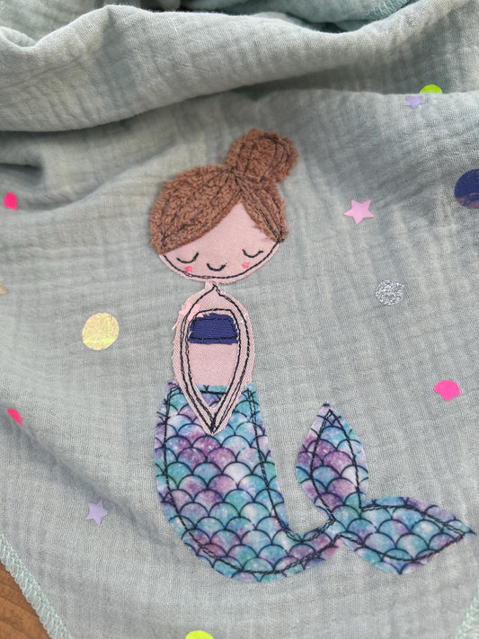 Kinder Halstuch Musselin, Musselintuch Musselinschal TuchMeerjungfrau, Geschenk, Konfetti, Glitzer, Musselin mint, Tuch Frühling Ostern