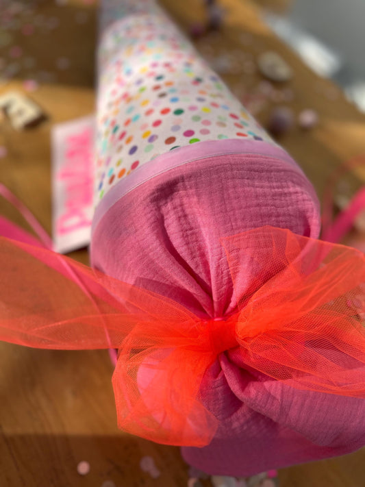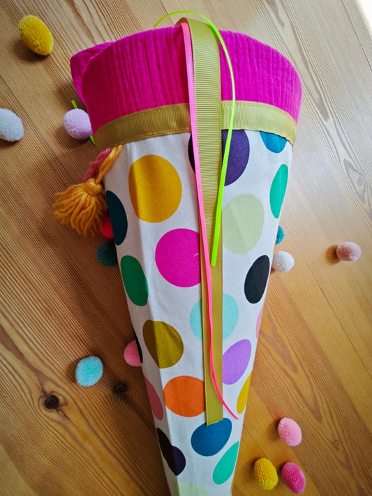 Schultüte Musselin Schultüte Stoff Schulanfang Schultüte Mädchen Einschulung Schultüte pinke Punkte Konfetti Dots neon kurze Lieferzeit!