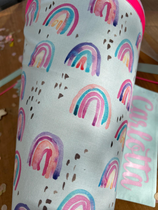 Schultüte Schulstart Stoff Schulanfang Mädchen Einschulung Musselin große bunte Punkte big dots Regenbogen Name Milla Louise
