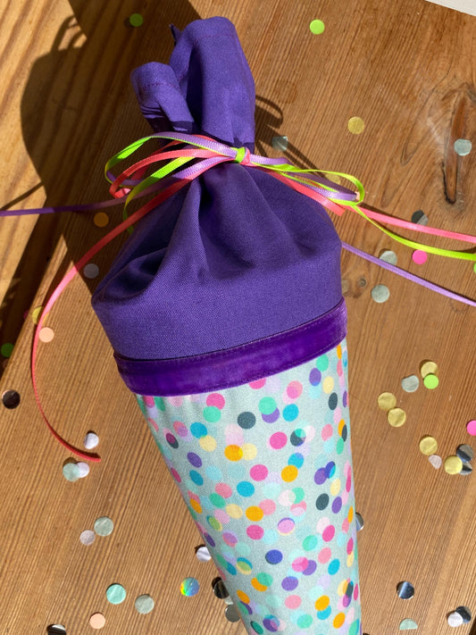Geschwisterschultüte, Zuckertüte, Trosttüte Musselin Schultüte Stoff Schulanfang Einschulung bunte Konfetti Kindergarten Milla Louise lila