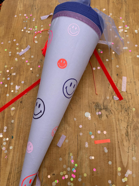 Schultüte Musselin Schultüte Stoff Schultüte Mädchen Schultüte Smileys ,Schultüte Tüll, Schultüte Ergobag, Schultüte lila flieder, Konfetti