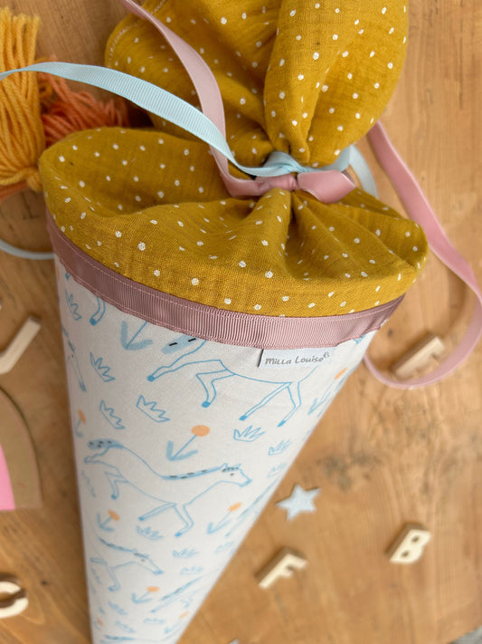 Nur 3 Stück! Schultüte Musselin Schultüte Stoff Schulanfang Schultüte Mädchen Schultüte Einschulung Schultüte Pferde Pferdeschultüte blau