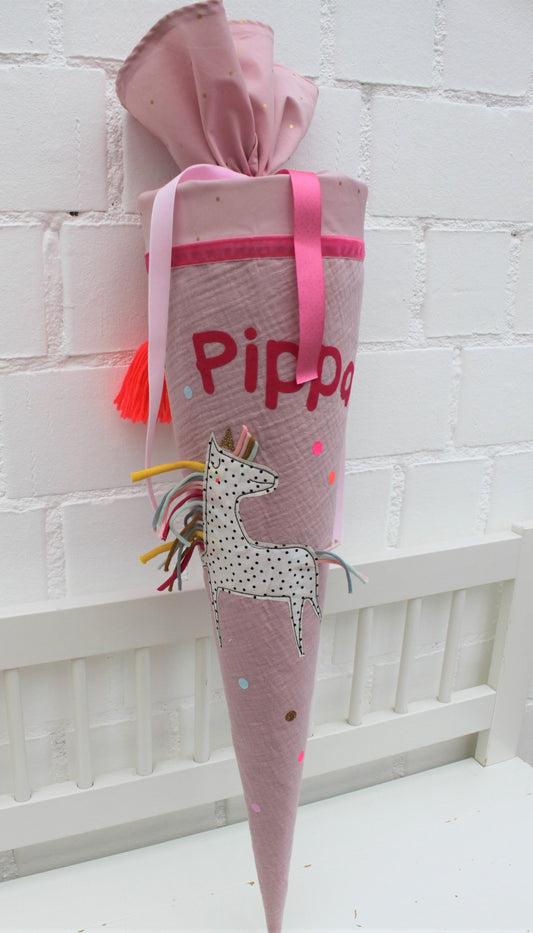 Schultüte Musselin Schultüte Stoff Schulanfang Schultüte Mädchen Schultüte Einhorn Einschulung kleine Schultüte Geschwisterschultüte