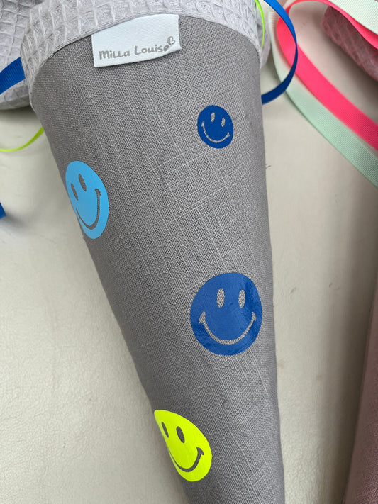 Geschwisterschultüte Zuckertüte Trosttüte Schultüte Stoff Schulanfang Einschulung Geschwisterschultüte Musselinschultüte Smiley neon