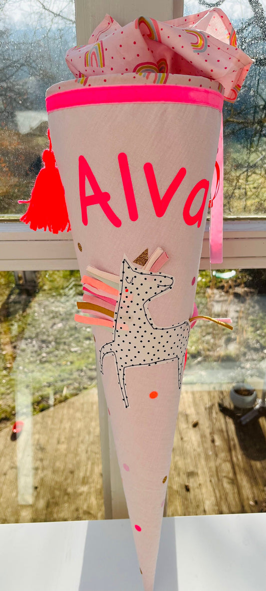 Geschwisterschultüte, Zuckertüte, Trosttüte Musselin Schultüte Stoff Schulanfang Einschulung Musselinschultüte Einhorn Mädchen Milla Louise