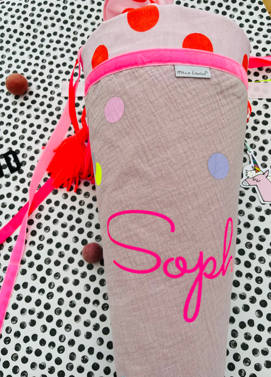 Geschwisterschultüte, Zuckertüte, Trosttüte Musselin Schultüte Stoff Schulanfang Einschulung Musselinschultüte Apfel pink Mädchen