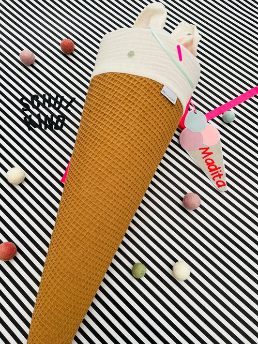 Schultüte Eis Schultüte Stoff Schultüte Mädchen Schultüte Eistüte Einschulung Eiswaffel Softeis, Waffeleis Vanilleeis Schultüte Waffeleis