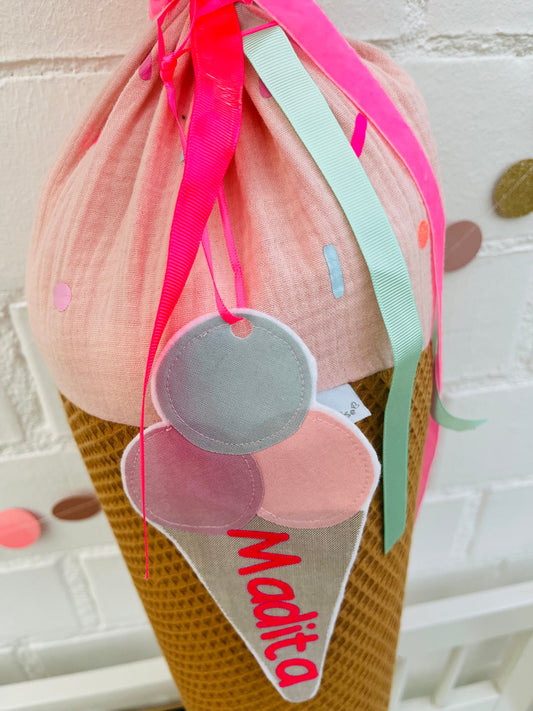 Schultüte Eis Schultüte Stoff Schultüte Mädchen Schultüte Eistüte Einschulung Geschwisterschultüte Eiswaffel, Schultüte Softeis, Waffeleis