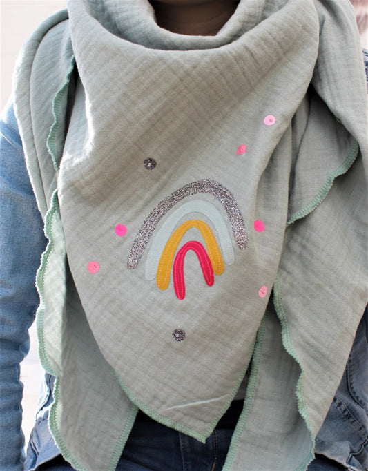 Girls muslin scarf, muslin scarf, muslin scarf, rainbow scarf, rainbow scarf, confetti, glitter, muslin mint, gray children's scarf