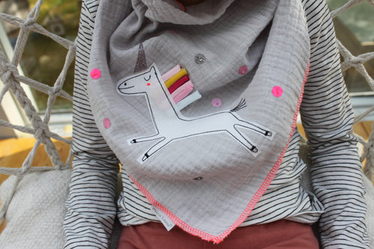 Children's scarf muslin, muslin cloth, muslin scarf, cloth unicorn, gift, confetti, glitter, muslin pink, cloth spring, summer,