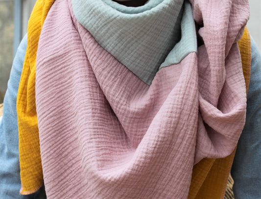 tricolor XXL scarf muslin 135x135 cm, muslin cloth, muslin scarf, triangular scarf, muslin, cotton muslin, scarf summer, spring
