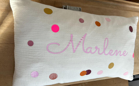 Musselinkissen mit Namen, Kissenbezug personalisiert Nameskissen Kissen Musselin Konfetti,Geschenk personalisiert, Geschenk für Kinder