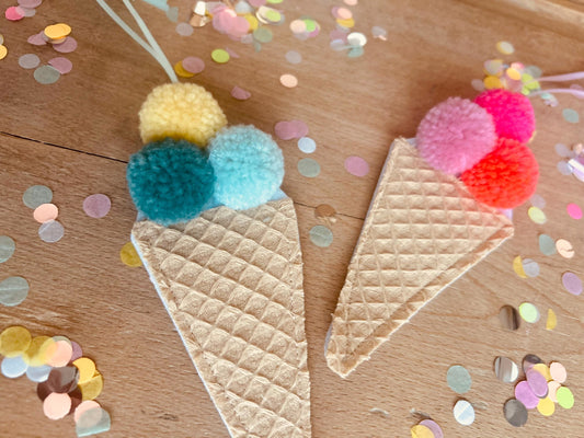 Anhänger Schultüte, Schultüte Eis, Schultüte personalisiert, Schultüten Anhänger, Neon, Tüll, Bommeln, Geschenk Einschulung, Eiswaffel