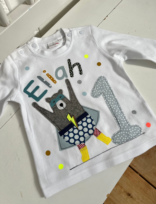 Geburtstagsshirt Kinder,Geburtstagsshirt,Shirt für Jungs,Shirt mit Name,Shirt mit Zahl, Shirt Superheld, Shirt Bär, Superheldenshirt,Bären