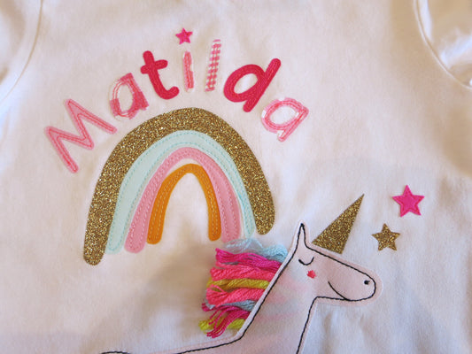 Geburtstagsshirt Einhorn, Mädchen, Kinder, T-Shirt, Einhornshirt , Geburtstag, Zahl, Namen, Regenbogen, Geschenk, von MillaLouise