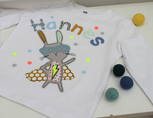 Geburtstagsshirt Kinder,Geburtstagsshirt,Shirt fürJungen,Shirt mit Name,Shirt mit Zahl, ShirtSuperheld, Shirt Geburtstag, Superhero, Hase