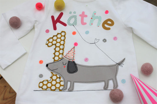 Geburtstagsshirt Dackel, Mädchen, Kinder, T-Shirt,Zahlenshirt , Geburtstag, Zahl, Namen, Hund, Geschenk, Frühling, Sommer, rosa, mint