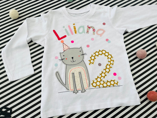 Geburtstagsshirt Katze, Mädchen, Kinder, T-Shirt,Zahlenshirt , Geburtstag, Zahl, Namen, Katze, Geschenk, Frühling, Sommer, rosa, mint